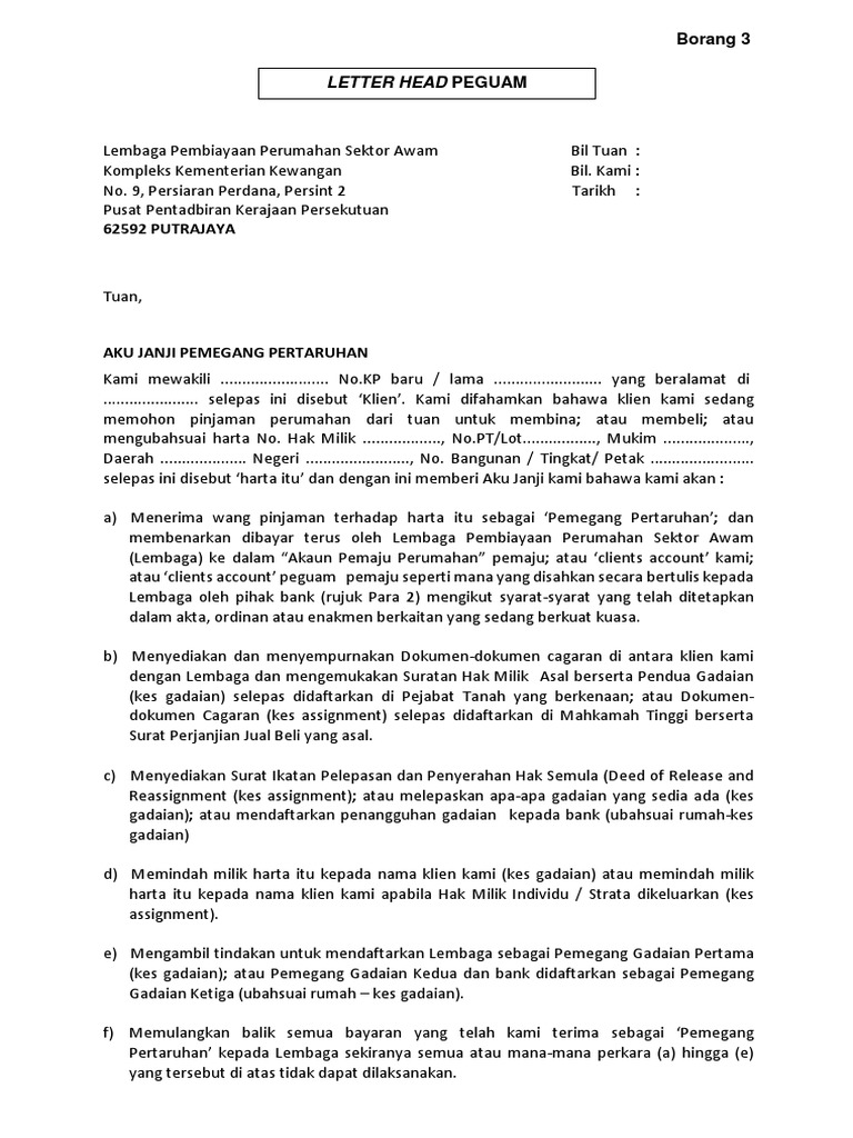Contoh Surat Aku Janji Pemaju Projek Perumahan