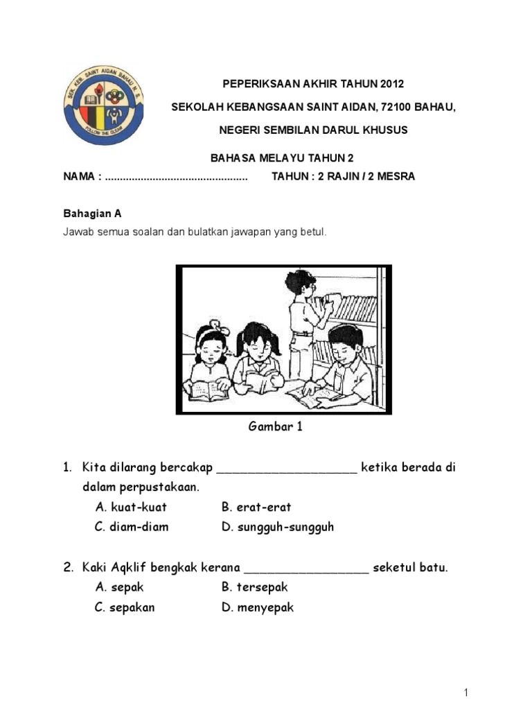 Contoh Soalan Peperiksaan Akhir Tahun Bahasa Melayu Tingkatan 1