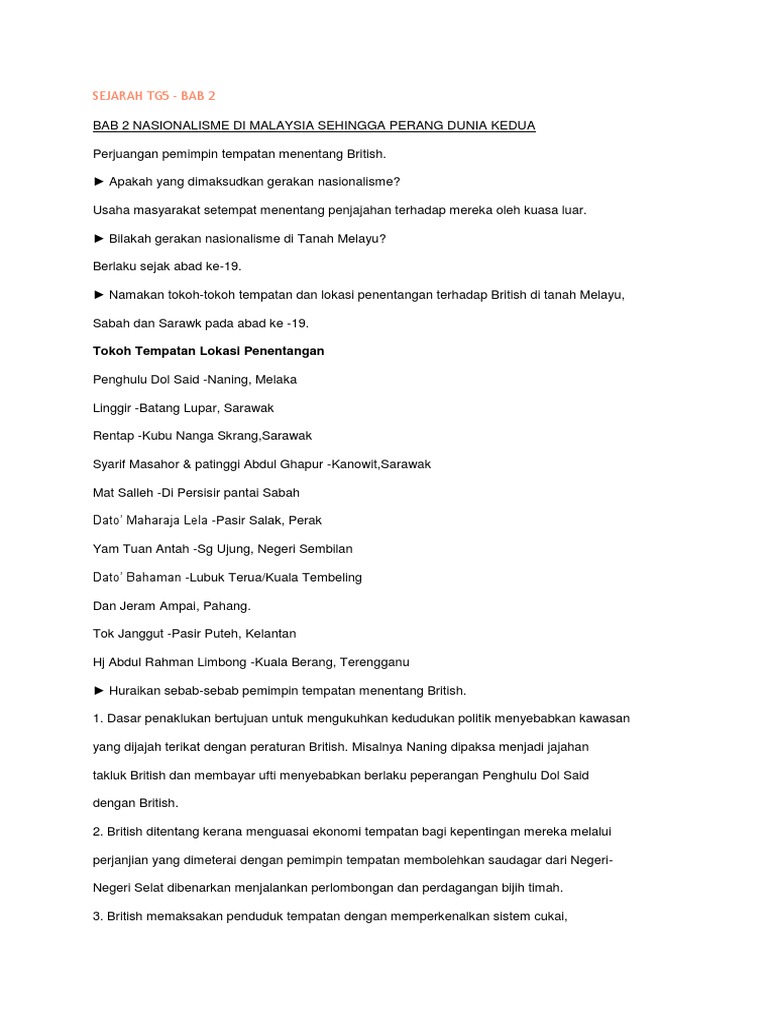 BAB 2 NASIONALISME DI MALAYSIA SEHINGGA PERANG DUNIA KEDUA ![]()