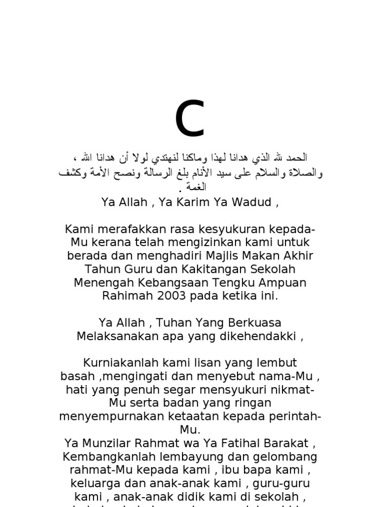 Doa Majlis Makan AKhir Tahun 2003 PDF