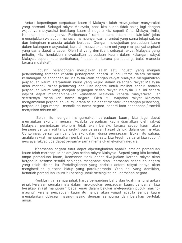 Kepentingan Perpaduan Kaum Di Malaysia Karangan Upsr - Gallery Baru